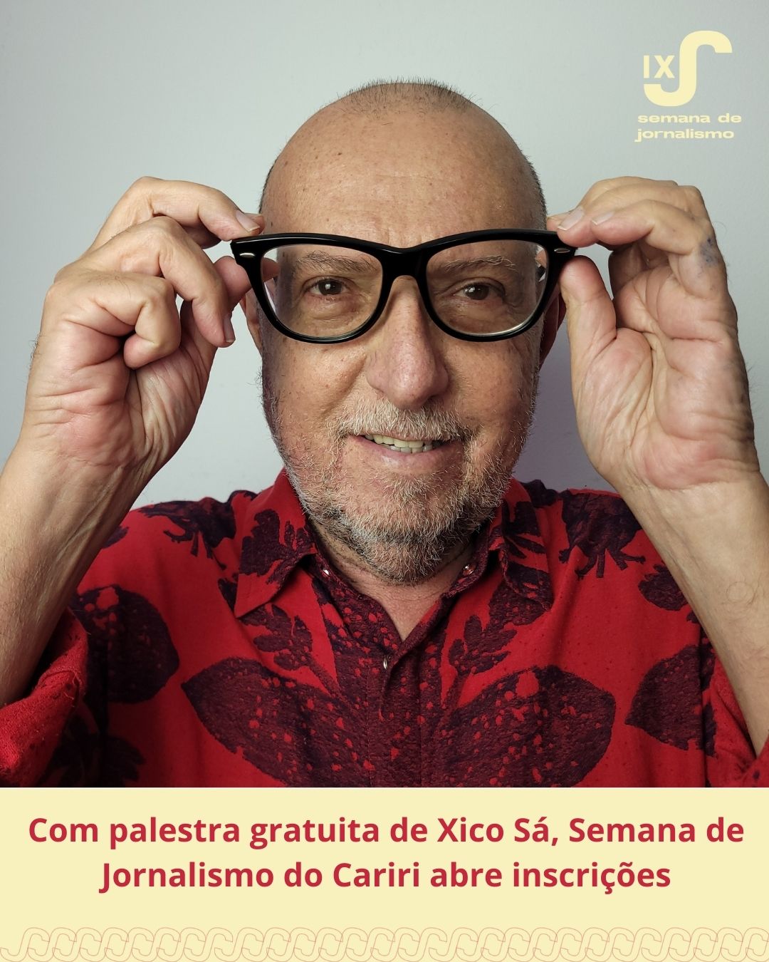 O jornalista e escritor cratense Xico Sá é o convidado da palestra de abertura da nona Semana de Jornalismo do Cariri, no dia 08 de setembro, marcando as comemorações dos 15 anos do curso de Jornalismo da Universidade Federal do Cariri (UFCA). Com o tema “Lugares do Jornalismo: O jeito caririense de comunicar”, o evento, gratuito e aberto ao público, acontecerá de 08 a 12 de setembro, reunindo palestras, oficinas, rodas de conversa, minicursos e mesas de debate.