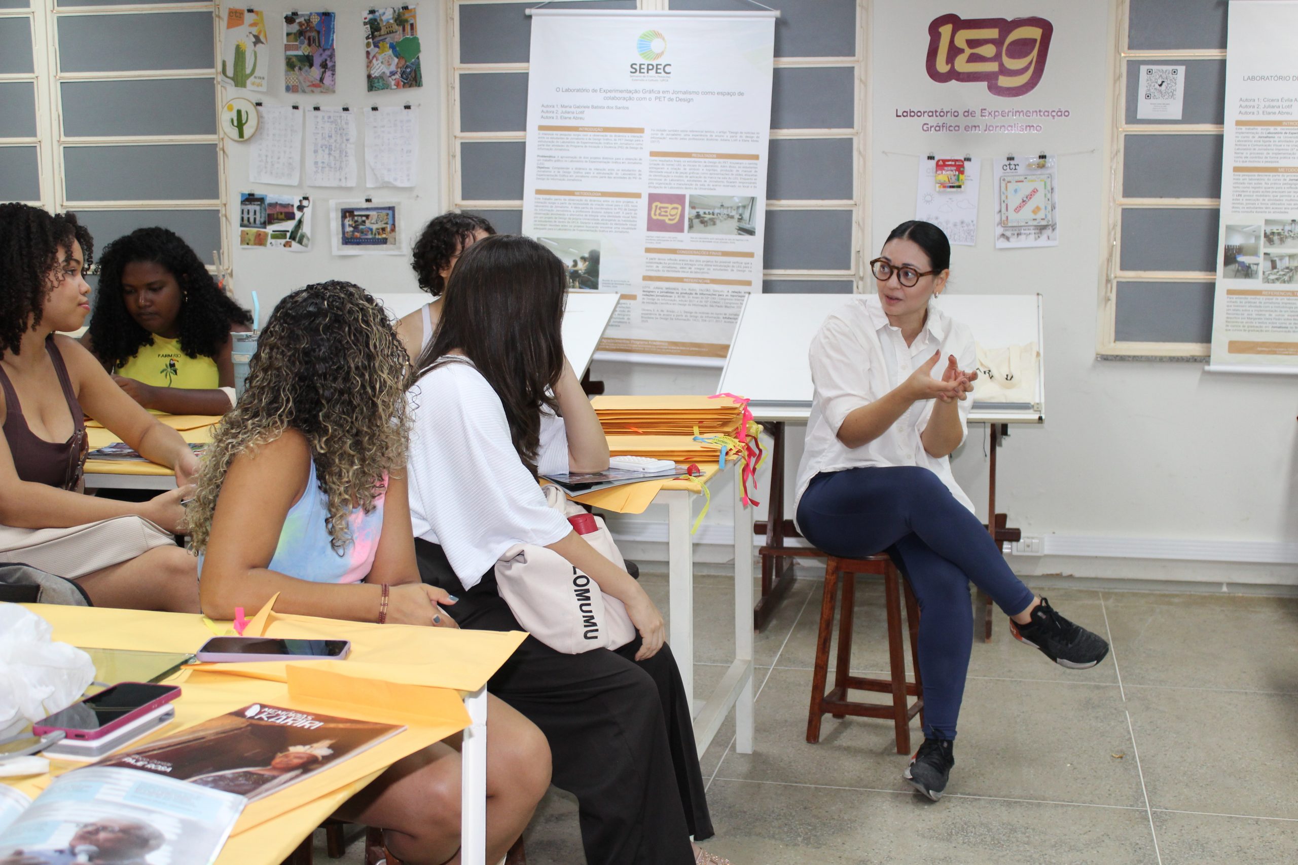 Durante a atividade, os(as) estudantes conheceram o Laboratório de Experimentação Gráfica (LEG), através de uma mediação feita professora e vice-coordenadora do curso, Juliana Lotif. Na oportunidade, foram distribuídas a todas as pessoas presentes exemplares das revistas Caracteres e Memórias Kariris, que são projetos de mídia impressa do curso de jornalismo da UFCA. Também foram realizadas visitas aos laboratórios de radiojornalismo e telejornalismo.