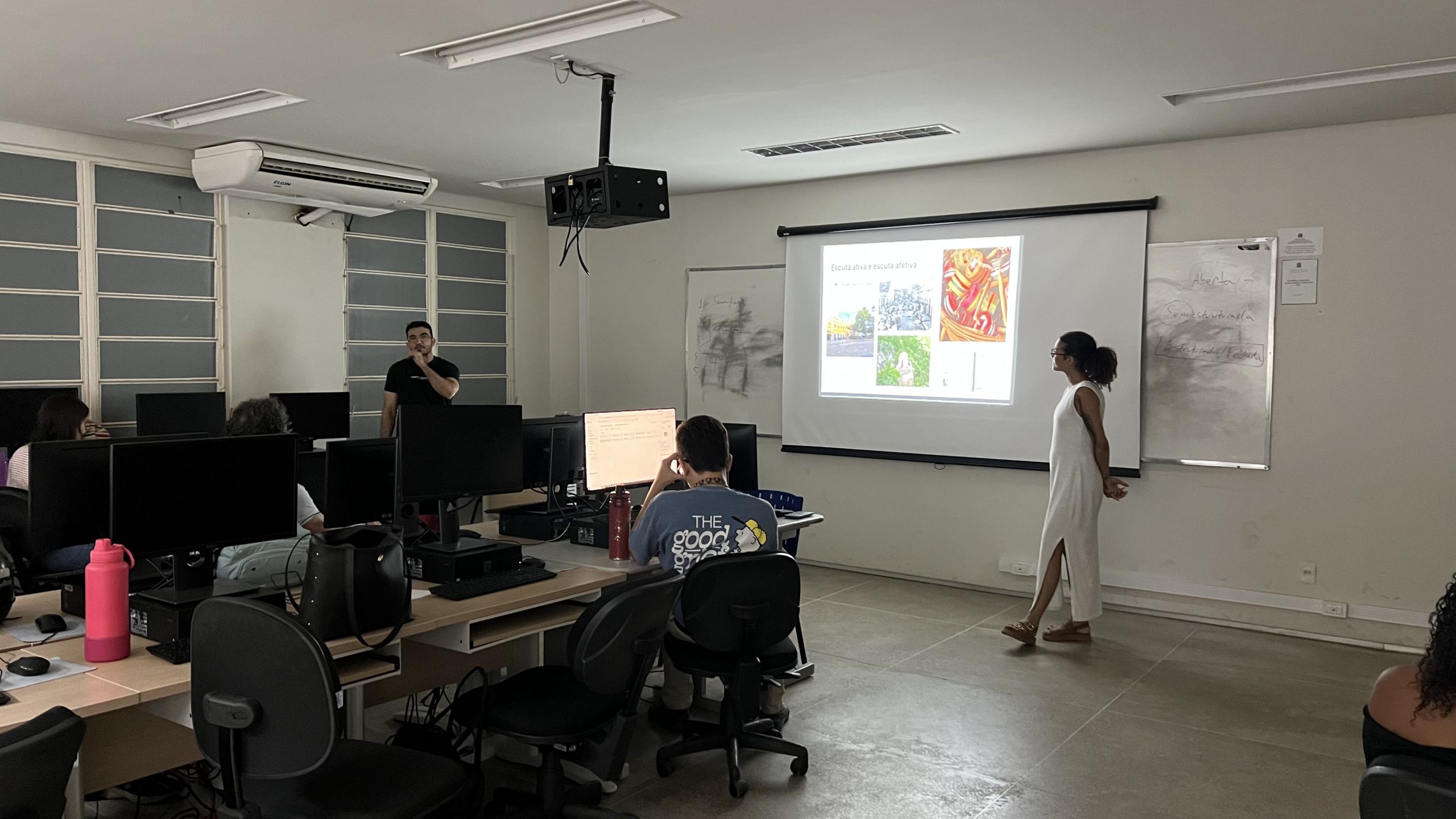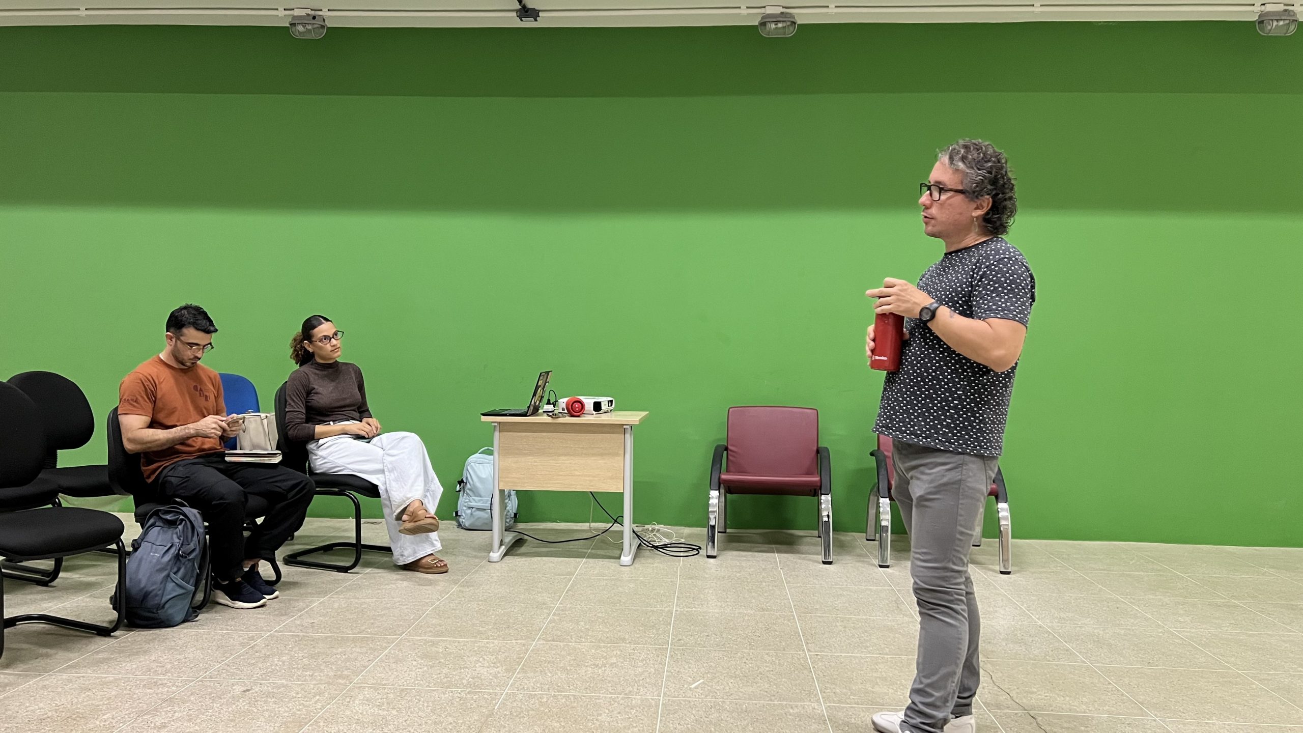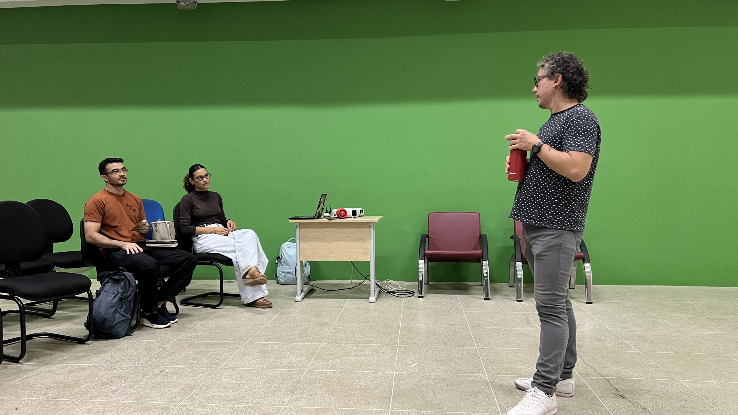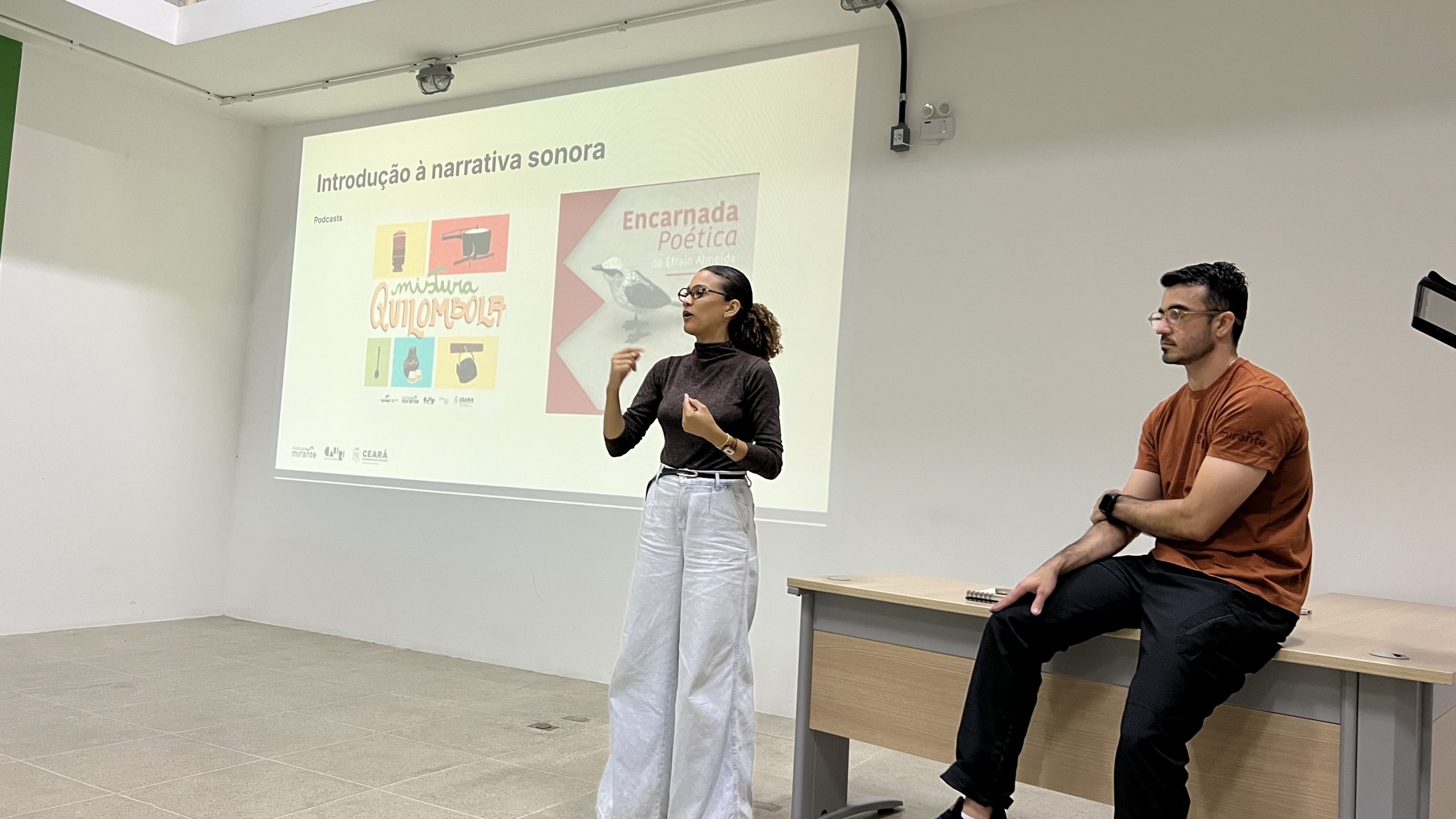 Aécio Diniz e Pâmela Queiroz, que integram a equipe da Rádio-escola Unaé, conduziram a ação formativa, que teve como objetivo aprofundar os conhecimentos sobre o som e seus elementos, percorrendo desde a escuta atenta do ambiente até o processo criativo coletivo. A programação foi acompanhada pelos docentes Ligia Rodrigues e Tiago Coutinho, que ministram disciplinas laboratoriais no curso de Jornalismo (IISCA/UFCA).