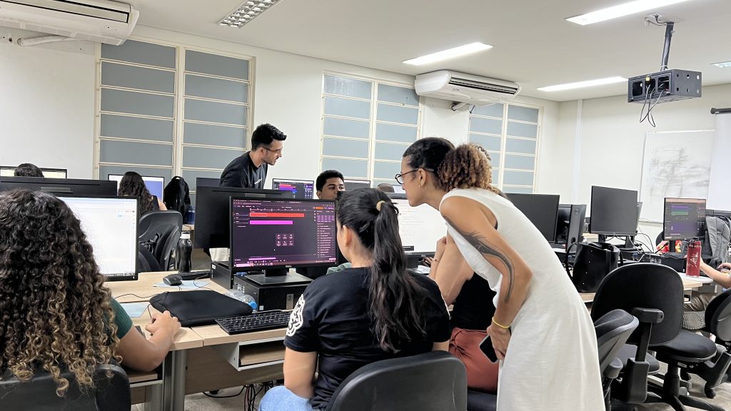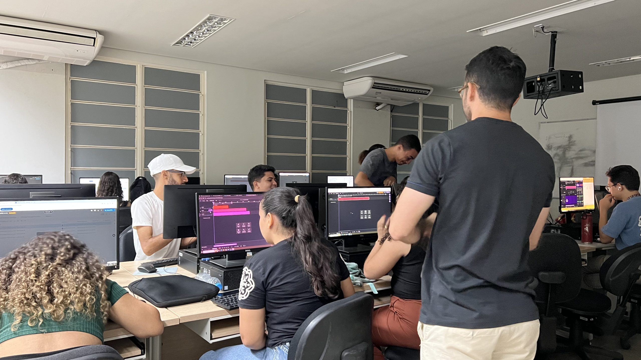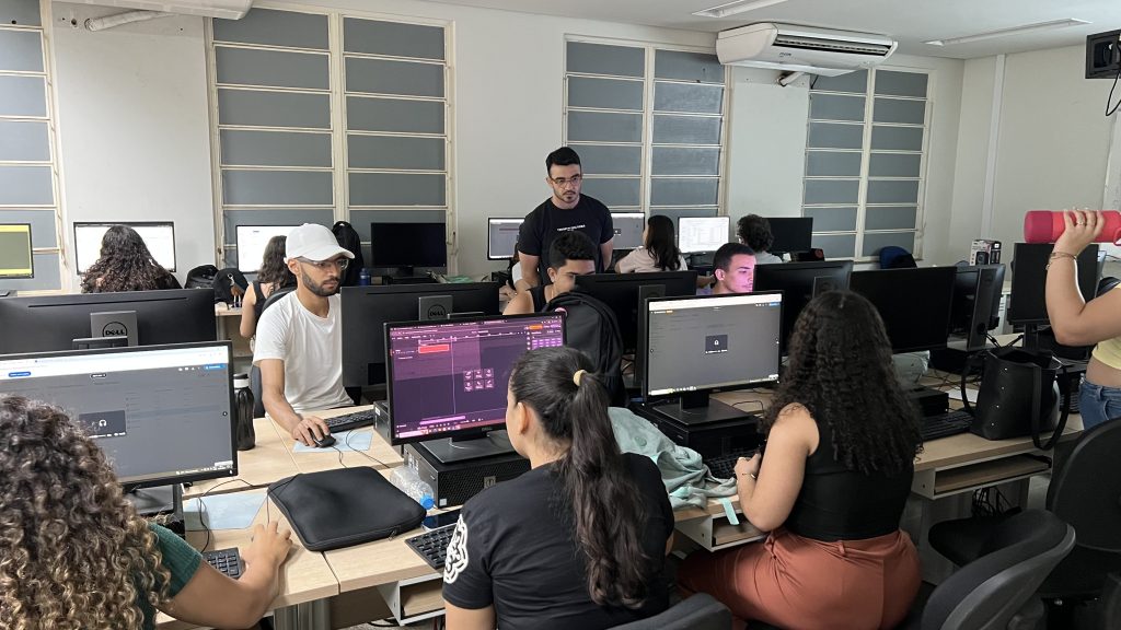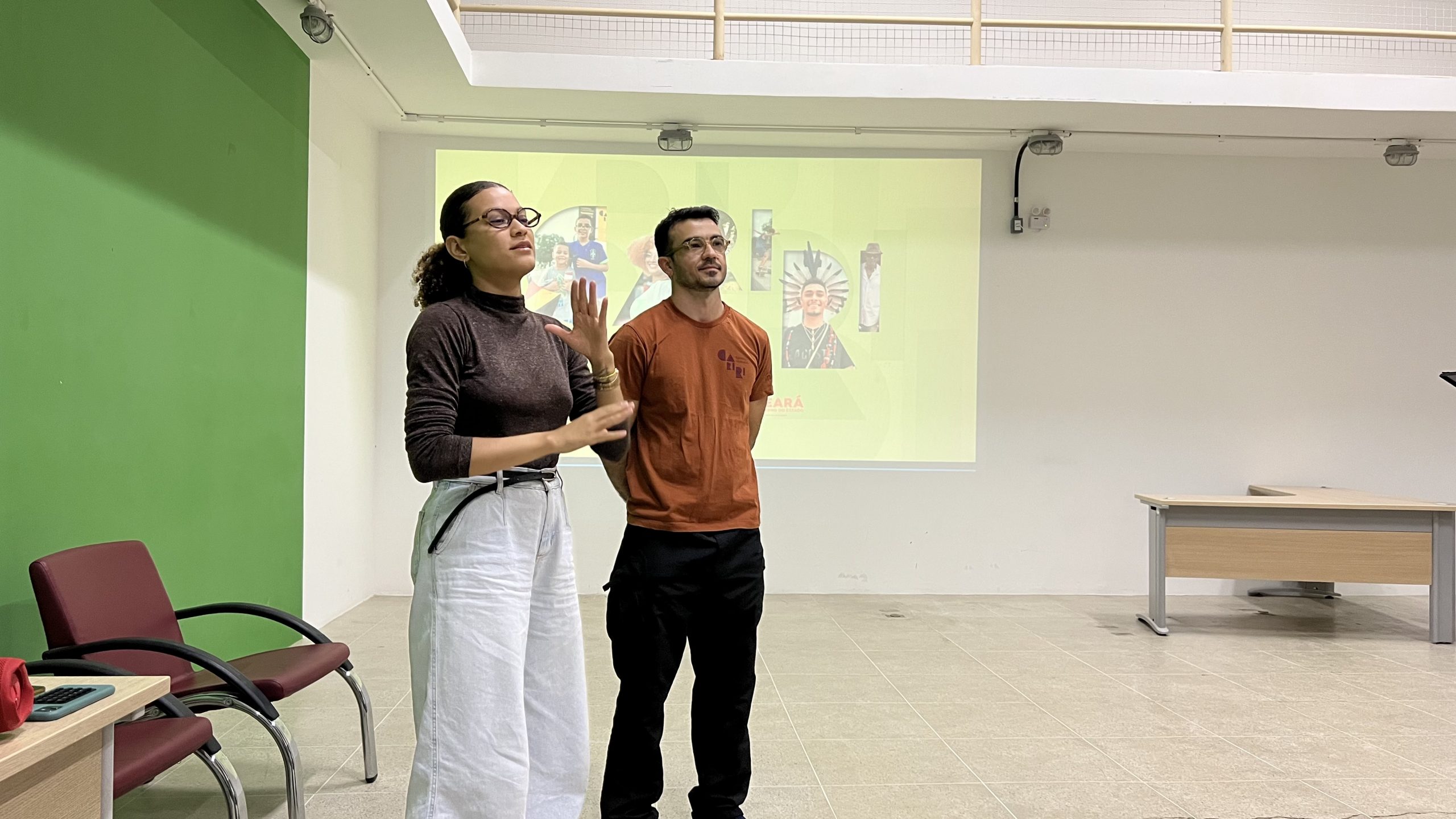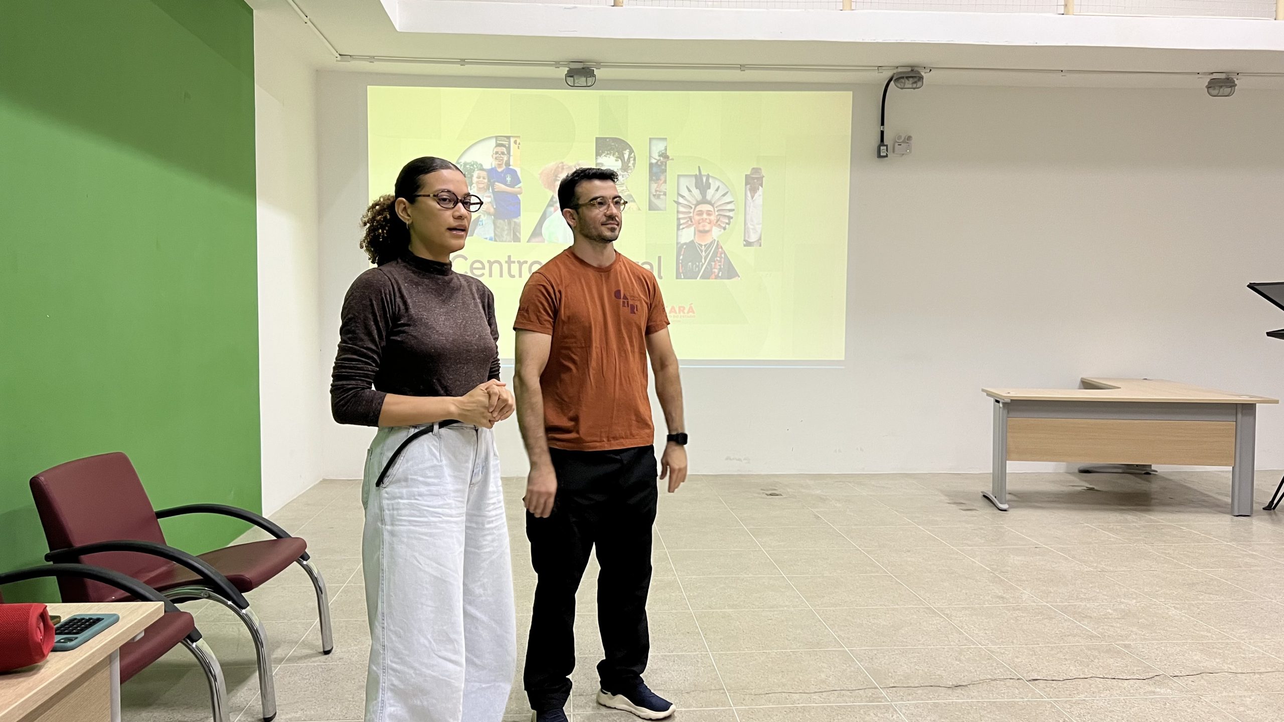 Aécio Diniz e Pâmela Queiroz, que integram a equipe da Rádio-escola Unaé, conduziram a ação formativa, que teve como objetivo aprofundar os conhecimentos sobre o som e seus elementos, percorrendo desde a escuta atenta do ambiente até o processo criativo coletivo. A programação foi acompanhada pelos docentes Ligia Rodrigues e Tiago Coutinho, que ministram disciplinas laboratoriais no curso de Jornalismo (IISCA/UFCA).