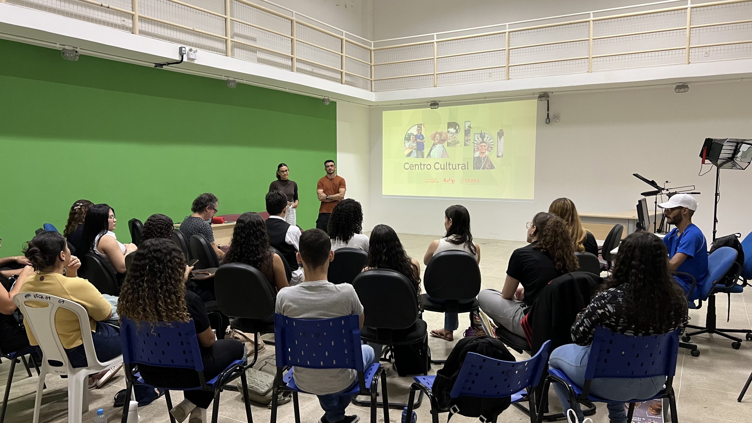 Nos dias 14 e 16 de janeiro, estudantes do sexto semestre matriculados(as) nas turmas dos Laboratórios de Telejornalismo e Radiojornalismo, participaram de uma oficina voltada à experimentação e criação sonora. A atividade, intitulada “Oficina de Edição e Gravação de Áudio”, foi realizada em parceria com o Centro Cultural do Cariri Sérvulo Esmeraldo (CCCariri), um equipamento da Secretaria da Cultura do Ceará (Secult/CE), gerido em parceria com o Instituto Mirante.