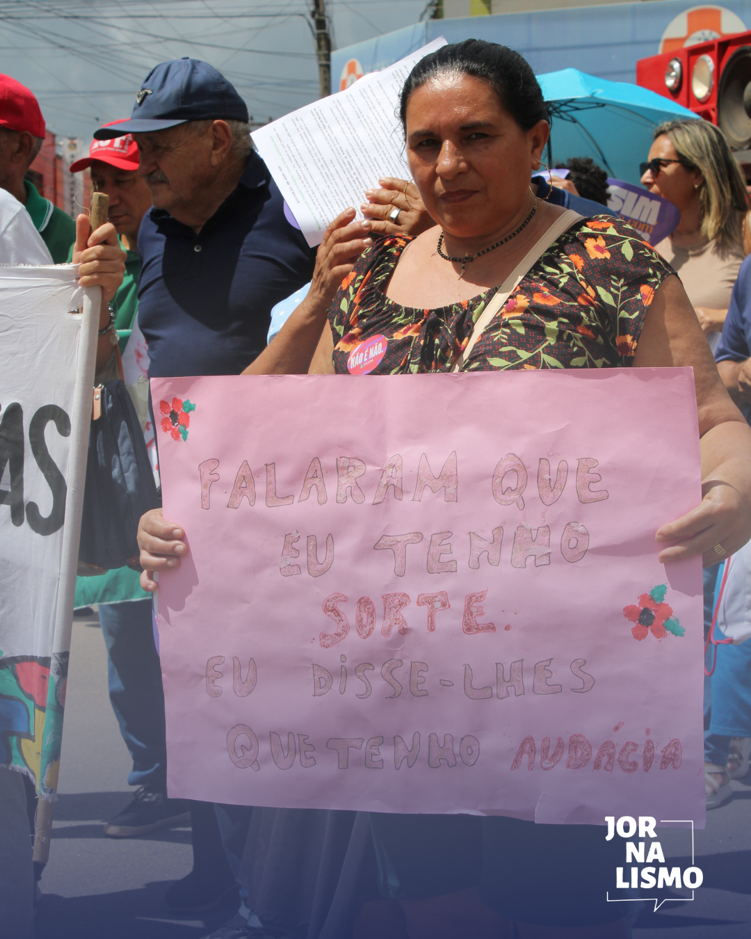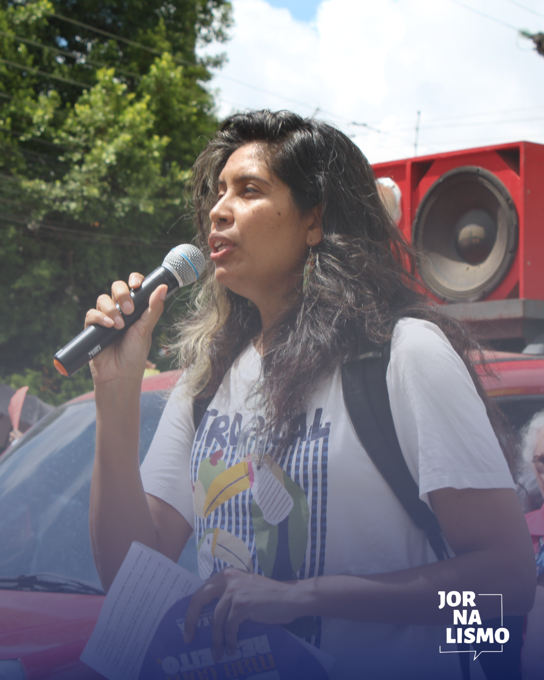 Durante o percurso, os participantes carregaram cartazes, faixas e articularam falas sobre a data, reforçando o debate político ligado à defesa dos direitos das mulheres e dos territórios. Em meio às falas, representantes destacaram a urgência da pauta de proteção às mulheres no país. As organizadoras do ato destacaram que metade da população brasileira tem medo de morrer por ser mulher.